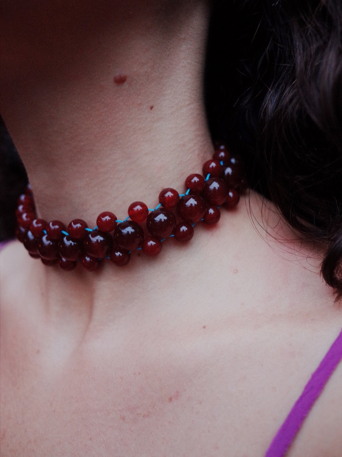 O Colar Atom Agate é feito à mão com Agatas Vermelhas naturais. Com design contemporâneo, essa peça é a expressão da identidade artística da designer Paola Orleans.