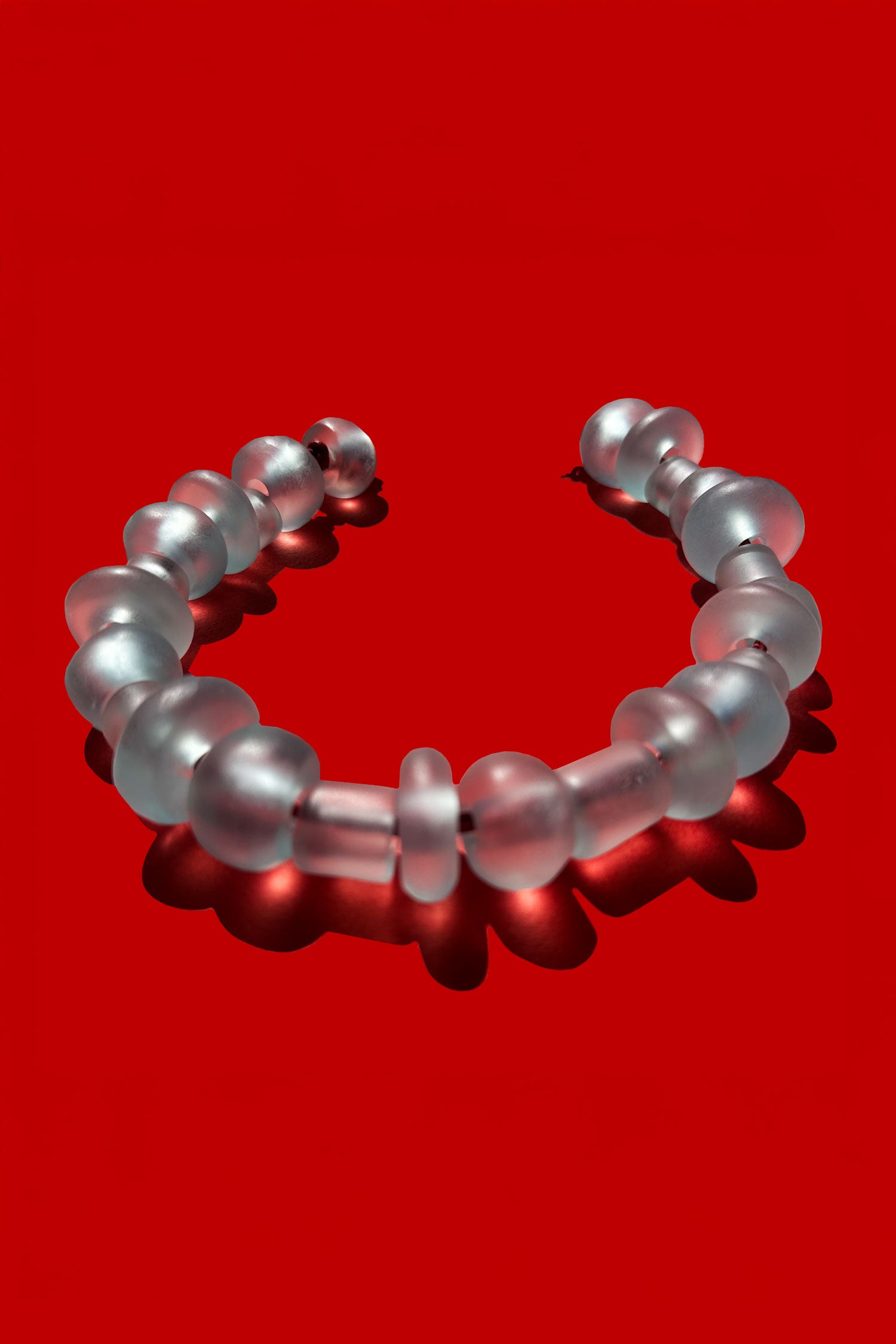 Modelado à mão, em um formato maior que o original, em versão de resina e conectado por fio de couro. | dimensões: + ou - 45 cm de comprimento |